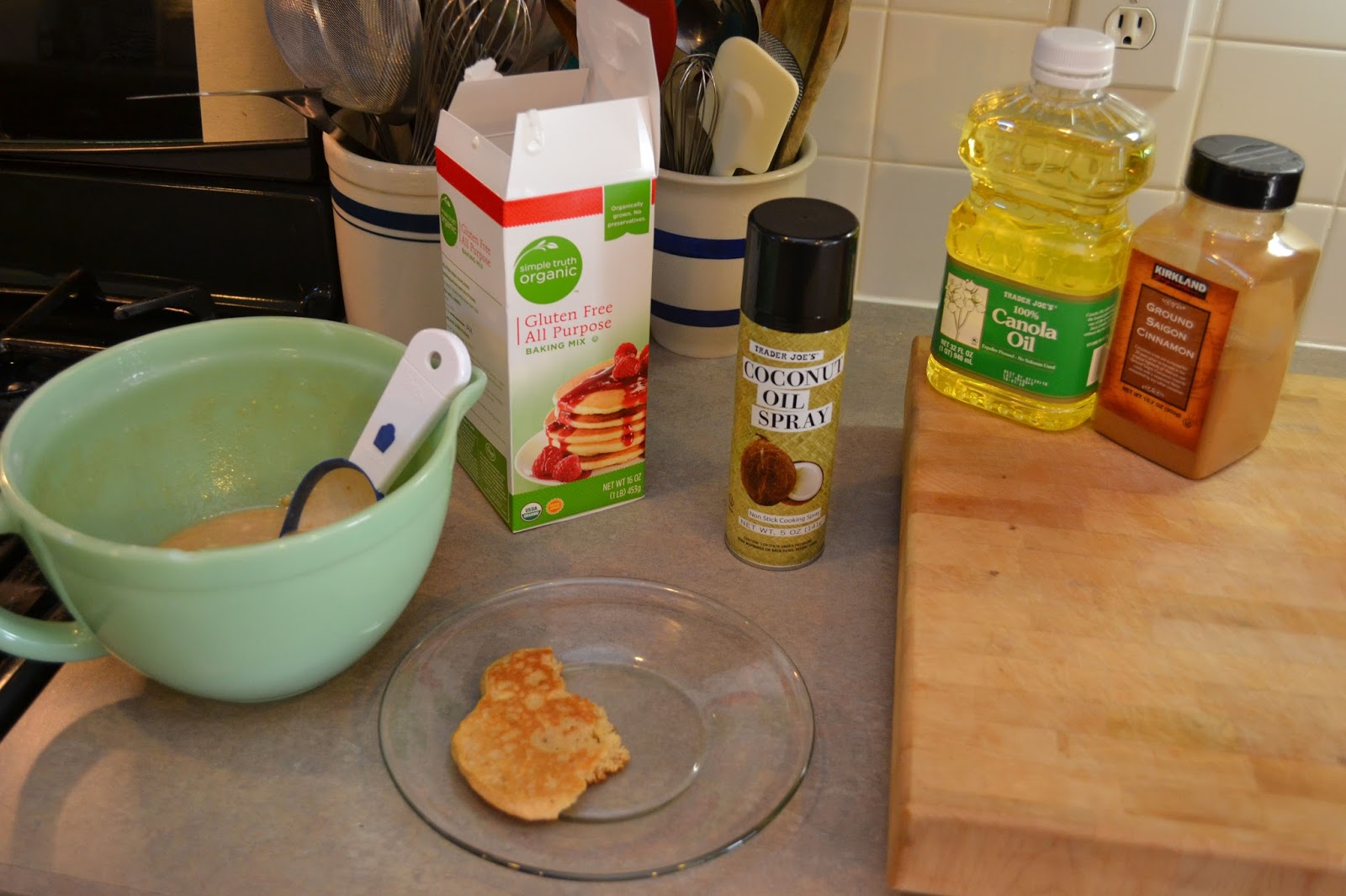 I'm happy to say this apple pancake activity was a success. I think the teacher & class aid heard me an understood. I was surprised when I found out that they were planning on making all of them gluten, dairy and peanut free. I was concerned with how they might turn out since not all alternative products are the same (I've had my fair share of bad gluten free and dairy free pancakes) but I recieved a happy report that they were delicious. The teacher sent home copies of the recipes they sounded awesome. My son went on and on with how great they were so we tried them out for breakfast this morning. OH MY GOODNESS THESE ARE GOOD!